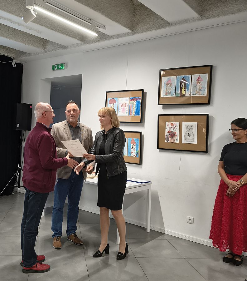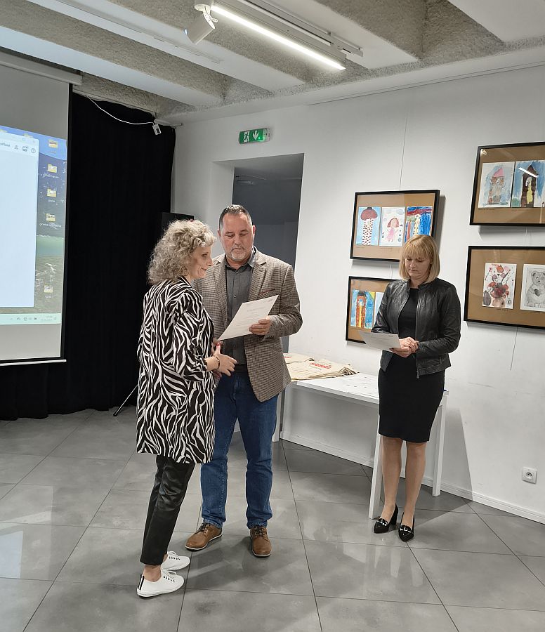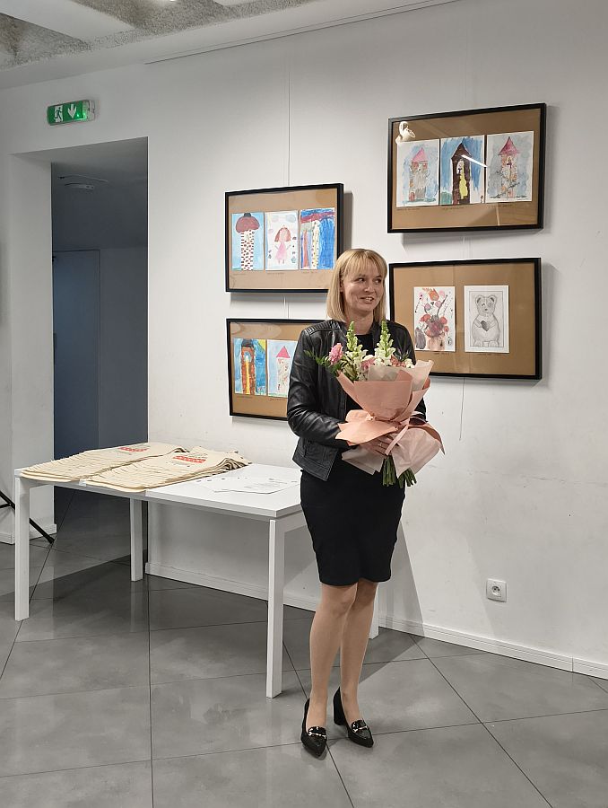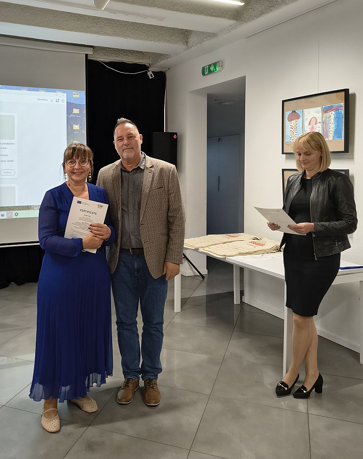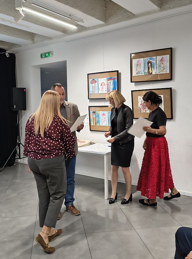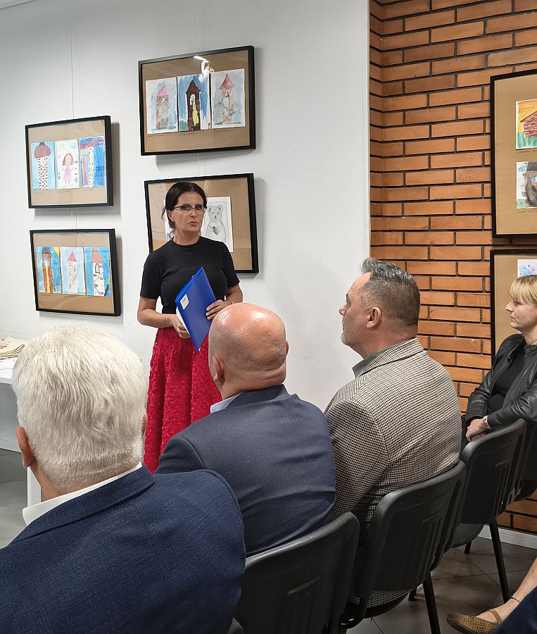 Dalszą część uroczystości poprowadził koordynator, który w swoim wystąpieniu przypomniał historię realizacji projektu, podziękował osobom zaangażowanym w jego organizację i współpracę oraz wręczył podziękowania i certyfikaty uczestnikom. Szczególne wyróżnienie i kwiaty otrzymała Agnieszka Zając z Fundacji InCrea, która wspierała szkołę na każdym etapie przedsięwzięcia.