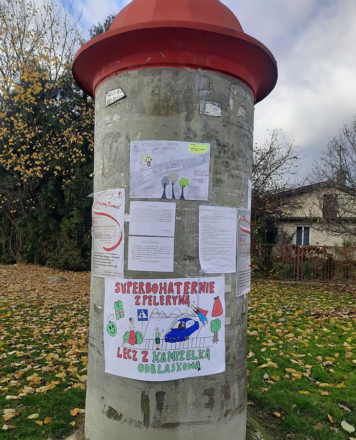 Uczniowie klasy 8 "a" w ramach realizacji działań w ogólnopolskim konkursie dla szkół podstawowych - "Odblaskowa szkoła 2025", organizowanym przez Komendę Wojewódzką Policji w Lublinie, przygotowali plakaty informacyjno-edukacyjne. Plakaty zostały wywieszone na słupach ogłoszeniowych w strategicznych miejscach Kocka.