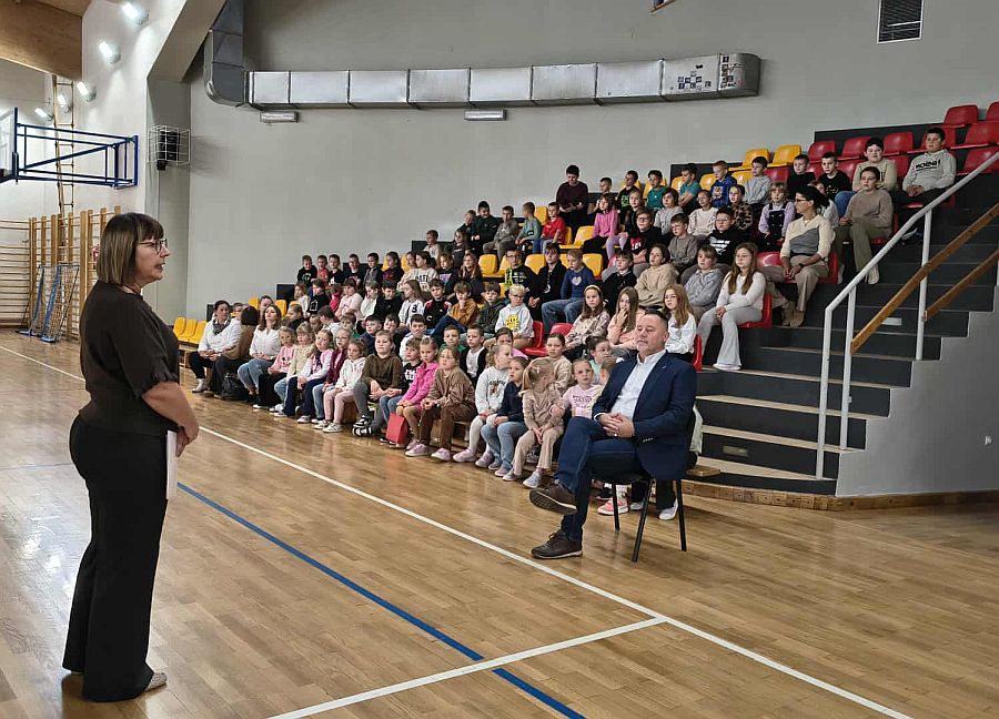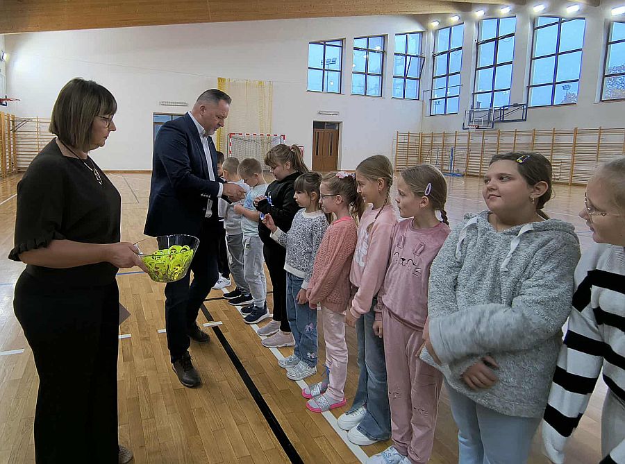 W czasie apelu dyrektor szkoły Pan Janusz Kucharuk rozdał najmłodszym uczniom elementy odblaskowe, które zostały zakupione przez szkołę w trosce o bezpieczeństwo naszych uczniów. Krótki konkurs dotyczący przepisów ruchu drogowego prowadzony przez Panią Renatę Czajkę pozwolił na przypomnienie najważniejszych zasad ruchu pieszych po drogach w mieście oraz poza miastem. Najaktywniejsi uczniowie otrzymali od Pana dyrektora Janusz Kucharuka nagrody w postaci: bidonów, piórników, opasek i szelek odblaskowych.