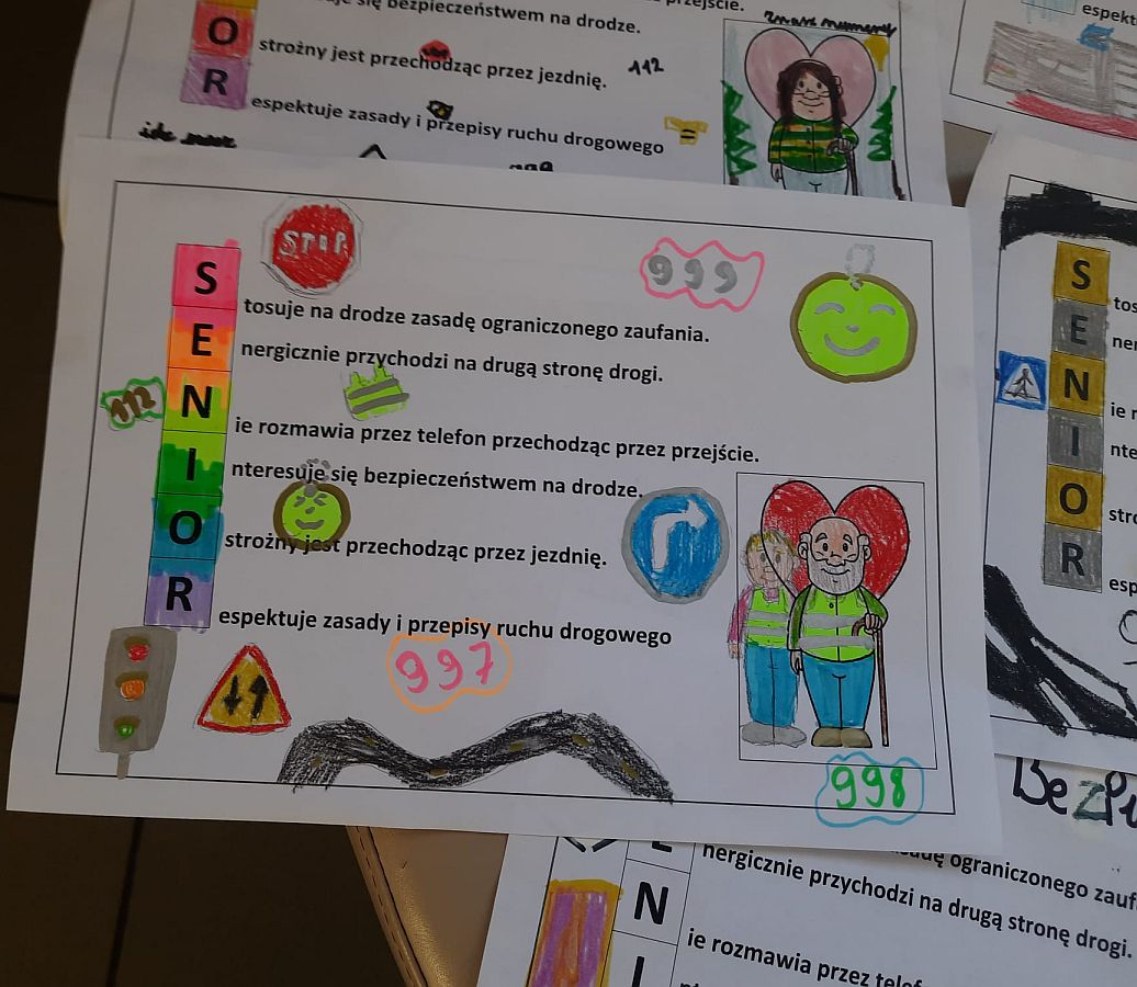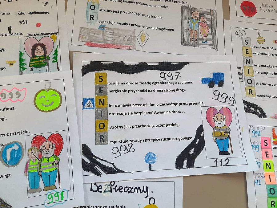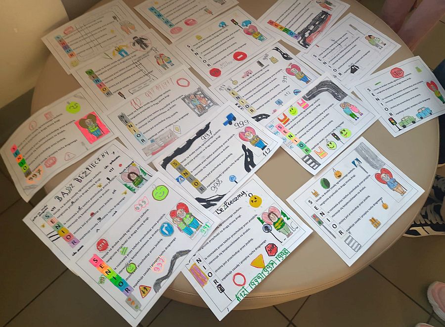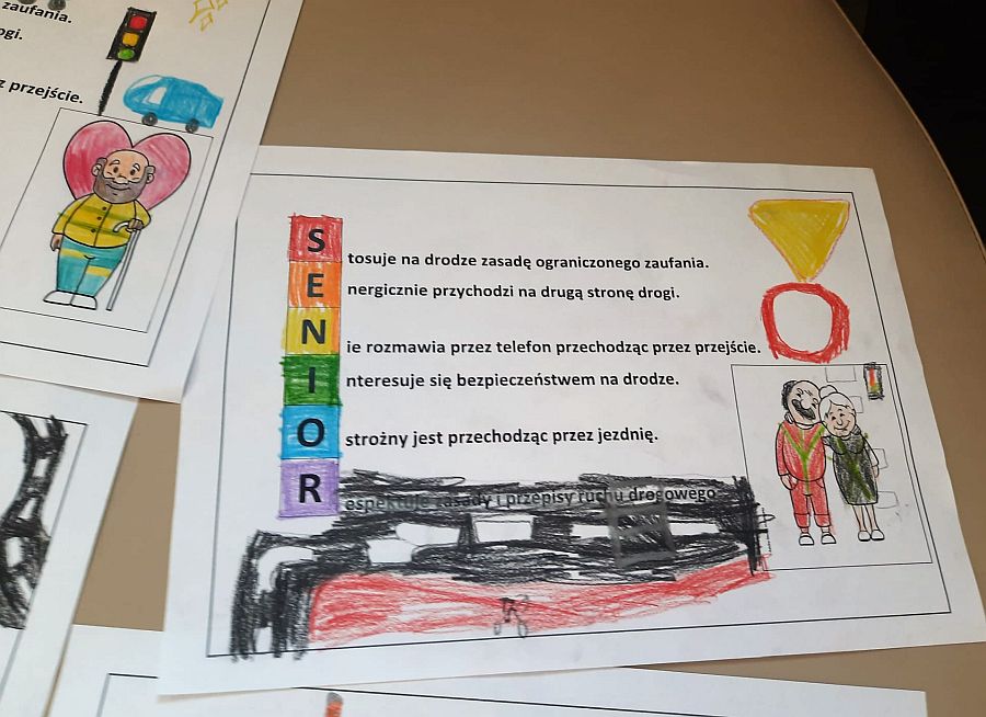 Uczniowie klas czwartych przygotowali ulotki dla swoich babć i dziadków w ramach akcji "Bezpieczny senior na drodze". Ulotki powędrowały już do ukochanych dziadków.