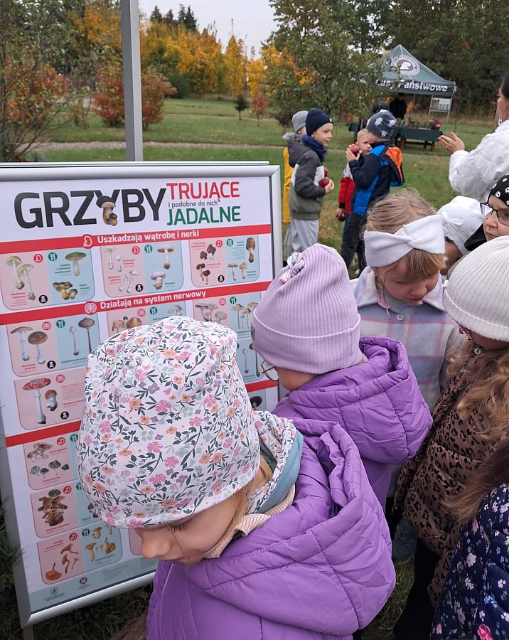Dnia 17.10.2025 r. uczniowie z kl. 1 a i 1b udali się do Radzynia Podlaskiego na WYSTAWĘ GRZYBÓW pt. ,,Poznaj grzyby – unikniesz zatrucia” zorganizowaną przez Państwowy Powiatowy Inspektorat Sanitarny oraz Nadleśnictwo w Radzyniu Podlaskim. Wystawa miała miejsce w ogródku edukacyjnym Nadleśnictwa. Uczniowie zobaczyli świeże okazy grzybów jadalnych i trujących, wysłuchali prelekcji i skorzystali z interaktywnych stanowisk edukacyjnych. Była to znakomita lekcja z przyrody.