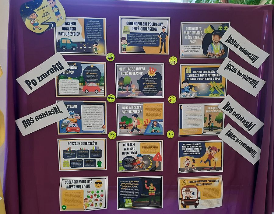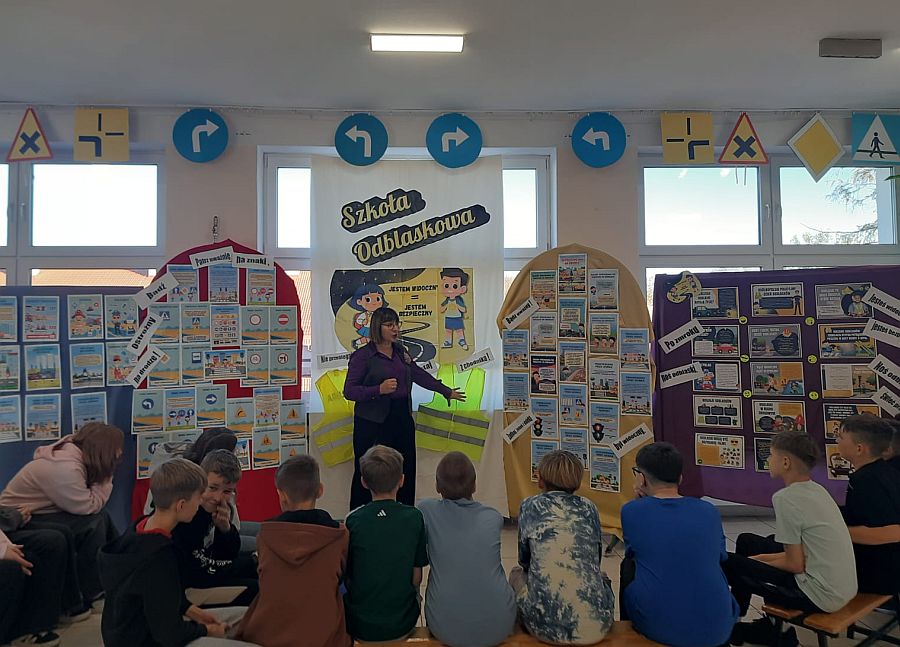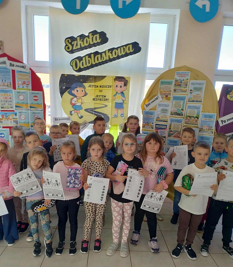 W związku z udziałem szkoły w Ogólnopolskim konkursie dla szkół podstawowych „Odblaskowa Szkoła 2025”, którego organizatorami jest Komenda Wojewódzka Policji w Lublinie na terenie naszej placówki odbywają się różne działania promujące bezpieczeństwo w ruchu drogowym, popularyzujemy noszenie elementów odblaskowych oraz edukujemy młodszych i starszych uczestników ruchu drogowego.